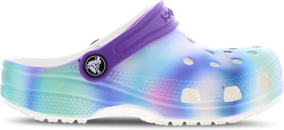 Specificaties: * Pasvorm: ruime pasvorm; hiel strap voor beter aansluitende pasvorm * Bovenwerk: bovenwerk met gaatjes voor ventilatie * Zooltype: Dual Crocs Comfort met Croslite materiaal voelt zacht aan en geeft de hele dag ondersteuning * Kleur: wit lichtblauw paars roze * Materiaal: synthetisch materiaal.