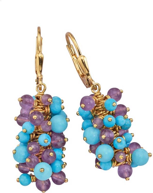 MONA Oorbellen met turkoois en amethist Goudkleur